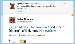 You pushed him, Dave, you've got form for that! #TheArchers (@SpareMousie on Twitter)