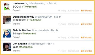 This is ridiculous. I am hopping up and down with excitement at#thearchers (@Lucyvfreeman on Twitter)