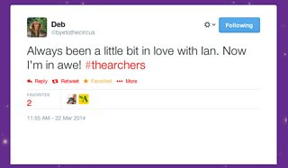 Always been a little bit in love with Ian. Now I'm in awe! #thearchers (@byetothecircus on Twitter)