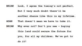 Brian has been trying to convince Adam that he’d like to buy more land in order to benefit all of his children.