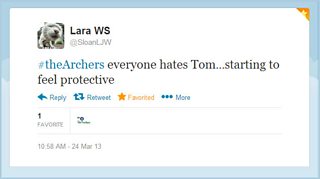 I am very worried...I am actually starting to feel sorry for Tom! What is happening to the world? #thearchers @BBCTheArchers #confused (@costlytrinket on Twitter)