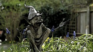 On his travels, by chance the messenger comes upon a remote mountain dwelling. He sees a strange creature dancing and singing outside. During the course of the triumphant song the creature reveals his name: Rumpelstiltskin.