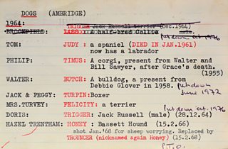 Arguably the dog with the highest profile (though perhaps Scruff has taken that crown now that he is immortalised in gin!) is Captain. So much so that he had his own set of index cards.