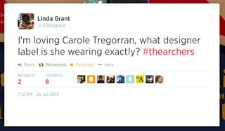 I'm loving Carole Tregorran, what designer label is she wearing exactly? #thearchers (@lindasgrant on Twitter)