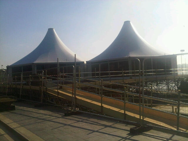 I've been outside the Cardiff Bay bubble. I said I might be some time and I was ... but I'm back blogging and am back, for now, in the Senedd bubble. In my absence two rounded studios have been erected on platforms outside - not, as my colleague Vaughan Roderick points out, in tribute to Jane Russell - but to house the temporary studios from where we'll be broadcasting on Friday.