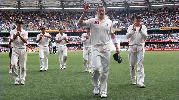 Peter Siddle acknowledges the applause of Aussie fans at the Gabba - photo: AP
