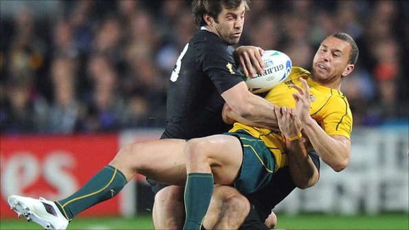 At 23:23 16th Oct 2011, thegreyghost wrote:10 man rugby? I thought the outside backs saw a lot of ball today. It's true that NZ played a more percentages based game, but for entertainment value I thought there was a lot of slick back line skill on display. A marked improvement on the force back kick-a-thon's we witnessed in '07. In particular both sides were very positive in defence and we saw a very low penalty count partially through incredible accuracy on behalf of both defences but also through Craig Jouberts remarkable consistency and clear communication.