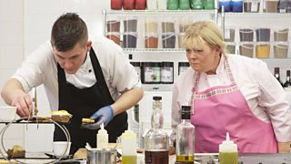 Fellow Great British Menu competitor Graham Campbell's skills are scrutinised by Jak