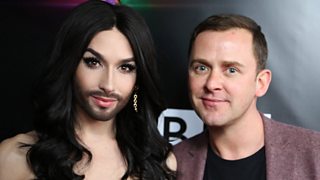 Conchita Wurst, who won Eurovision 2014, with Scott