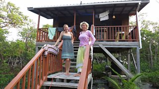 Lucy and Renee outside the hut that doubled as their base in Belize