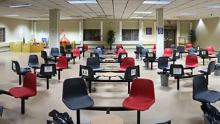 With fixed seating and a low central tables, the latter are designed to minimise physical contact between prisoners and their visitors - reducing the possibility of contraband being smuggled in.