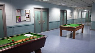 Again, we'd kept all the cell doors, bars and gates, noticeboards and cell furniture from the first series, so with hired pool tables, the wing has much of the look of the original.
