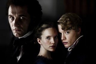 John Jasper (Matthew Rhys), Rosa Bud (Tamzin Merchant) and Edwin Drood (Freddie Fox)