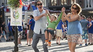 Tony (James Nesbitt) and Emily Hughes (Frances O’Connor) in the town square with Oliver