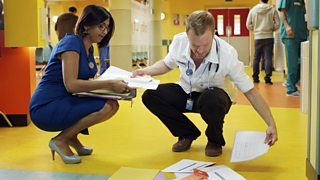Sunetra as Zoe in Casualty, alongside actor William Beck (Dylan)