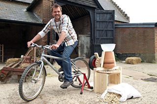 Another favourite of mine was my pedal-powered peanut shelling bike that I used to make peanut butter. Although it looks crazy, it's based on a bit of a real life kit.