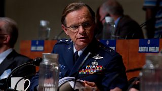 General Kutyna (Bruce Greenwood) at a Presidential Commission press conference