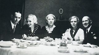 Idris Morgan, Gerda Sommer, Frau Scheffels, Anny Sommer and Fritz Sommer (Gerda's grandmother, mother and father) photographed at the Sommer's Berlin home, c. December 1933