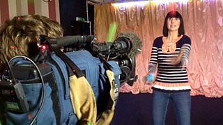 It was part of quite a complicated 'piece to camera' (PTC) we were filming. The idea: I'm the terrible holiday entertainer, being watched by an unimpressed holidaymaker – also me. In the shot in this week's programme, you'll see me watching the performance at the same time as my alter ego juggler is on stage.