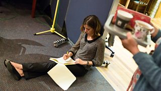 Helen Perry revising a script during rehearsals
