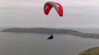 A paraglider launching off the top of the mountain. Apologies for the blurry image but I only had my mobile phone on me at the time!