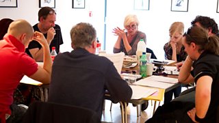 Helen Griffin in rehearsal with the team. Photo: Torch Theatre
