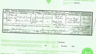 Marriage certificate of Cindynia Probert to Alfred Lewis
