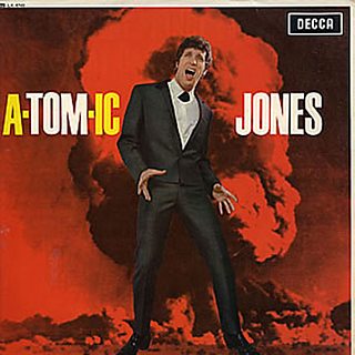 It's Tom Jones's 1965 A-Tom-Ic Jones, his second UK album. It's studio-produced, quickie art that just screams the era: Jones, suited and booted, in front of a Nevada Desert-like nuclear test explosion. It's so bad it's great - Tom Jones, it shrieks, is as powerful as an H-bomb.
