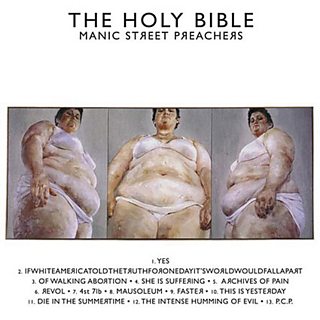 One of the sleeves which kept coming up is Manic Street Preachers' Holy Bible from 1994. The stunning image is a painting called Strategy (South Face/Front Face/North Face) by Jenny Saville. She gave the band permission to use the work free of charge after Richey Edwards told her the meanings behind every song of their classic work.