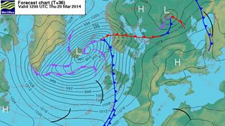 Weather chart for 20 March 2014 showing low pressure moving in from the Atlantic.