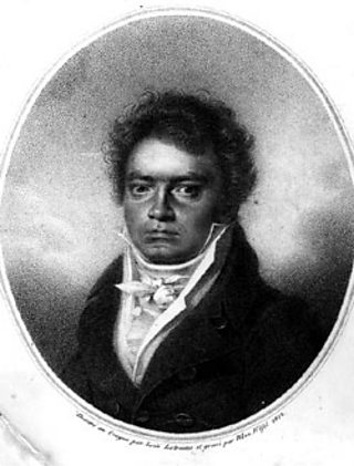 Engraving of Ludwig van Beethoven by Blas Hofel, from a crayon drawing by Louis Tehonne, 1814