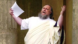 "I offered to MC the event, and was asked to write a verse to launch the competition. As we were the Caerleon Arts Festival, and Caerleon has a strong Roman connection, I wrote a short verse after the style of the Roman satirist Juvenal. We decided to read the poem to the assembled press from the steps of the Roman Legionary Museum - wearing a toga seemed to come naturally to mind in the circumstances.