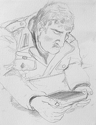 A sketch by artist on set Dan Llewelyn Hall. Image courtesy of the artist