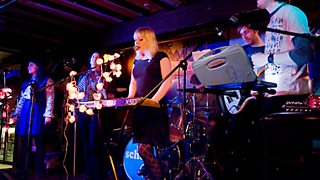The seven members of the band - usual drums, bass and guitar excellently complemented by keyboard, violin, trumpet and glockenspiel - squeezed onto the small stage and proceeded to enrapture those of us who weren't too ignorant to forego our Friday night booze up for half an hour watching a pop comet streak across our undeserving skies.