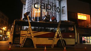 Setting up the Hinterland 'bus in bag' stunt in the early hours
