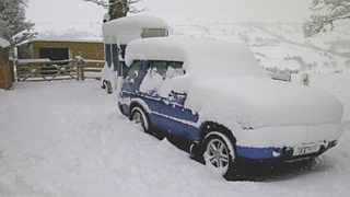 Geraint Edwards in Llanarmon Dyffryn Ceiriog in Denbighshire measured 15cm, 6 inches of snow in the village.