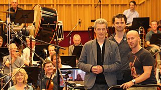 Peter Capaldi with conductor Ben Foster, composer Murray Gold and BBC National Orchestra of Wales