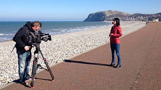 Lucy Owen filming in Llandudno where she was investigating booking fees