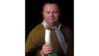 Harry Secombe posing with a leek for a sketch in The Goon Show, 1972