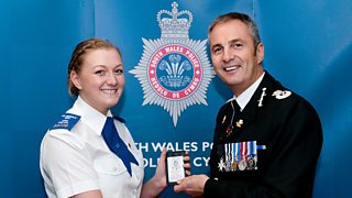 South Wales Police Chief Constable Peter Vaughan with PCSO Stacey Bolton
