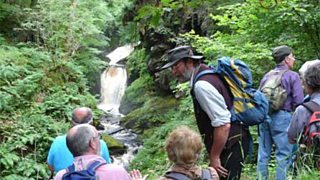 Groups of five or six took it in turns to stand with Doug on the viewing point perched at eye-level with the Rhaeadr (waterfall) Cynfal.
