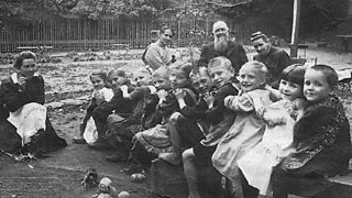 Children's home in Dresden. Ruth and Hans Schmidt are nearest the camera.