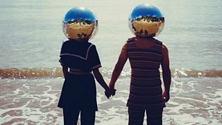 En route they get lost in the 1970s with the result being that when they arrive, their heads are stuck in disco balls and they are prone to outbursts of impromptu 70s dancing. Their seaside rituals, picnicking, bathing, promenading and fending off seagulls can be observed via binoculars from inside their time travel machine.