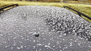 Hailstones in the Elan Valley, Powys on Sunday afternoon. Photo by Paul Williams.
