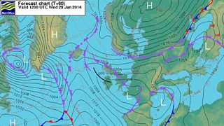 Met Office weather chart for Wednesday, 29 January 2014.