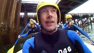 I was subsequently carried downstream at a rate of knots on my back, clutching two paddles whilst listening to 'Only Men Aloud' singing from the safety of their two rafts. Another day at the office! ;)
