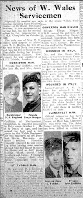 Knowing that Ivor Griffiths died on 2 October 1944 I loaded up the microfilm for that month and year and whizzed through the Western Mail to the appropriate week. Only to find nothing. Not a mention.