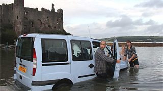 Wales has been experiencing the highest tides of the year. This picture from Laugharne shows the tide rising around a van last night.