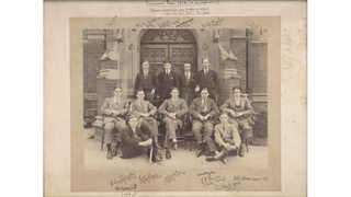 The photograph was accompanied by several other key documents and two more photographs - one of a young man in uniform and another of the same man in later life. The collection originally belonged to Eric Edgar Davies (middle row seated 2nd from right) who attended the Leys School in Cambridge.