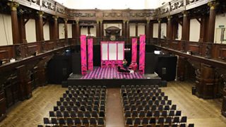 The company's chosen to perform at the Coal Exchange in Cardiff Bay as, due to the ongoing refurbishment of Sherman Cymru, the city is a drama venue down. The Coal Exchange is a great place for gigs and other functions, but I was intrigued to see how it would work for theatre.